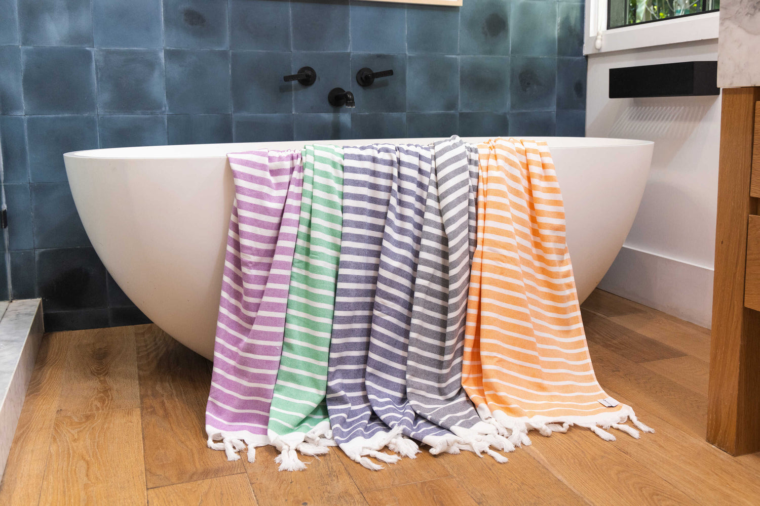 Bask Striped Organic Turkish Towel with Soft Terry Cloth Back in Black
