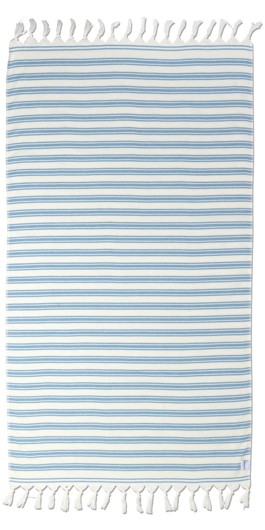 Bask Striped Organic Turkish Towel with Soft Terry Cloth Back in Blue
