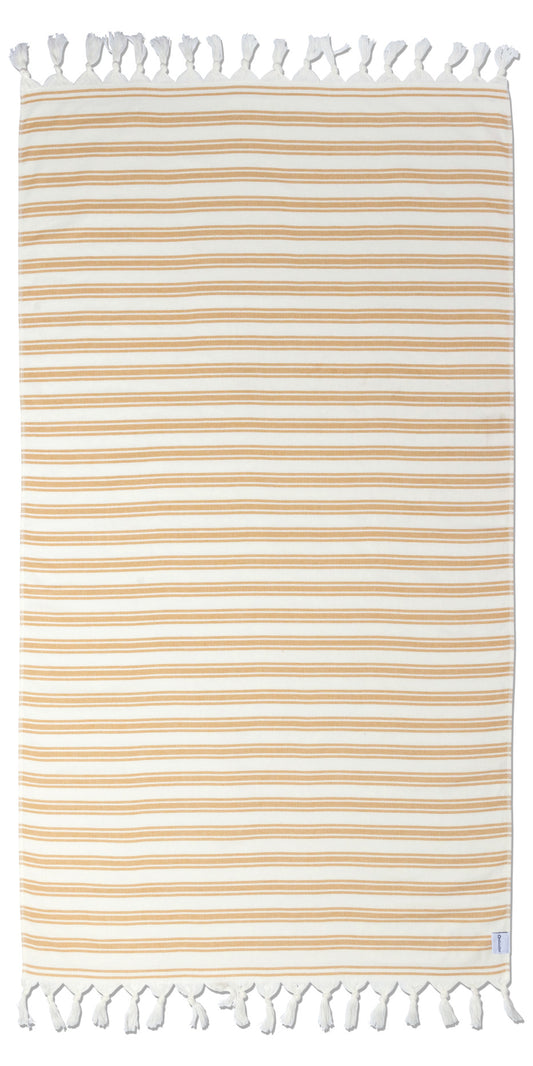 Bask Striped Organic Turkish Towel with Soft Terry Cloth Back in Mustard