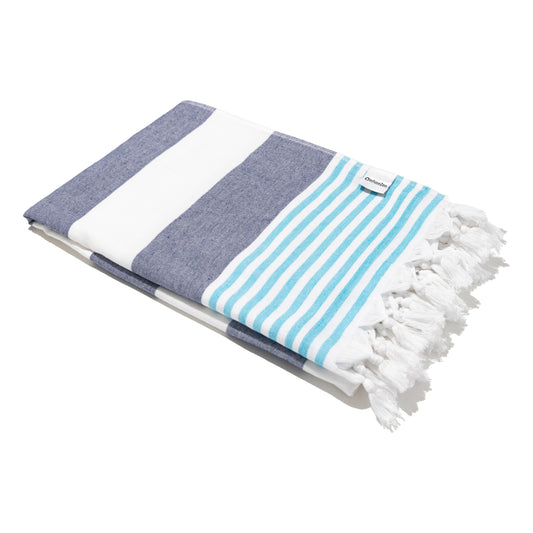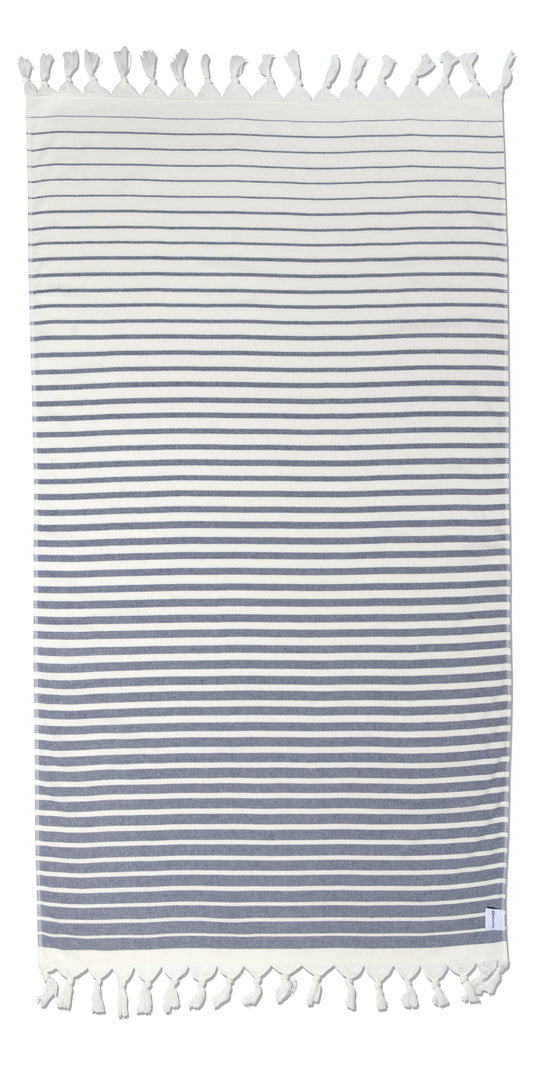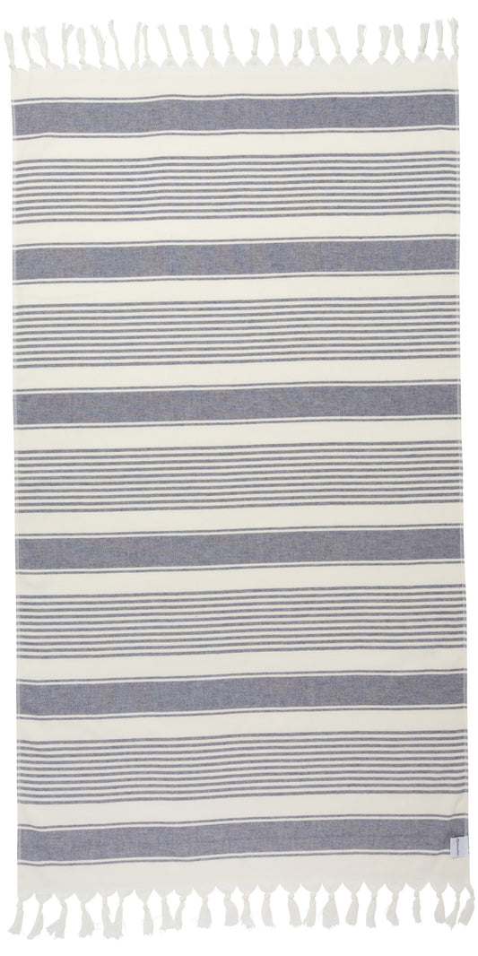 Marine Striped Turkish Towel with Soft Terry Cloth Back in Navy & Blue