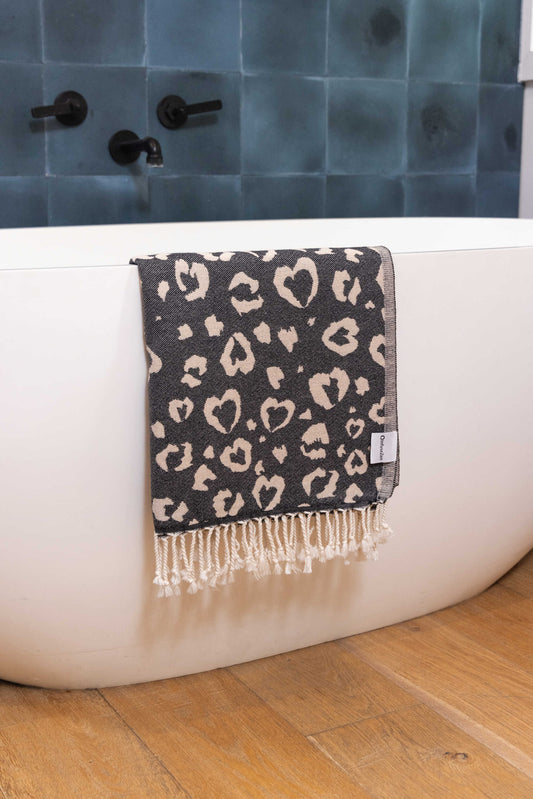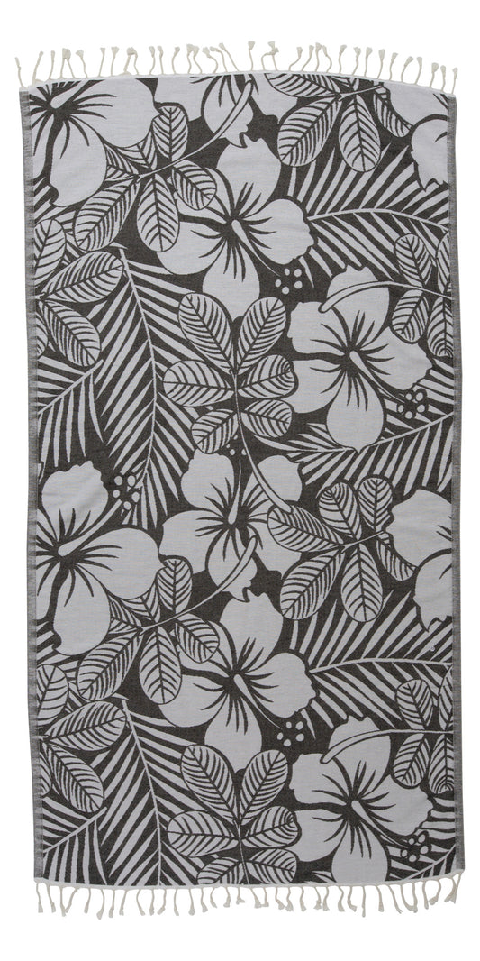 Hawaiian Flower Print Reversible Turkish Towel Made From 100% Cotton in Black