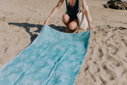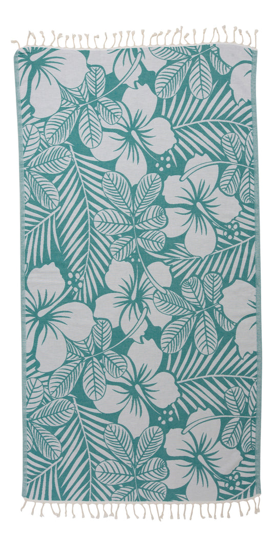 Hawaiian Flower Print Reversible Turkish Towel Made From 100% Cotton in Seagreen