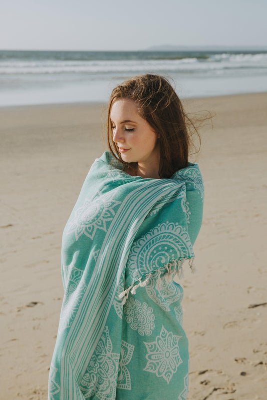 Mandala Flower Sand Resistant Turkish Towel in Seagreen