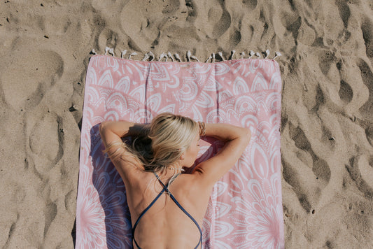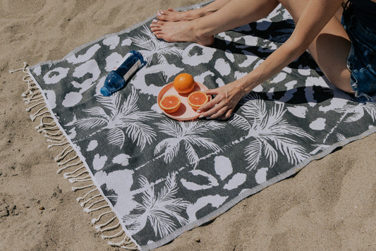 Whimsical Flower Organic Turkish Towel in Navy Blue