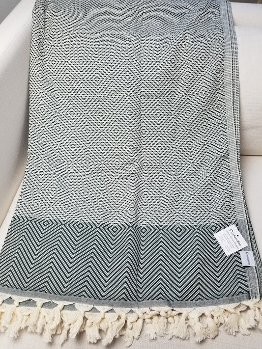 OUTLET SALE - Diamond Weave Turkish Cotton Throw Blanket in Grey