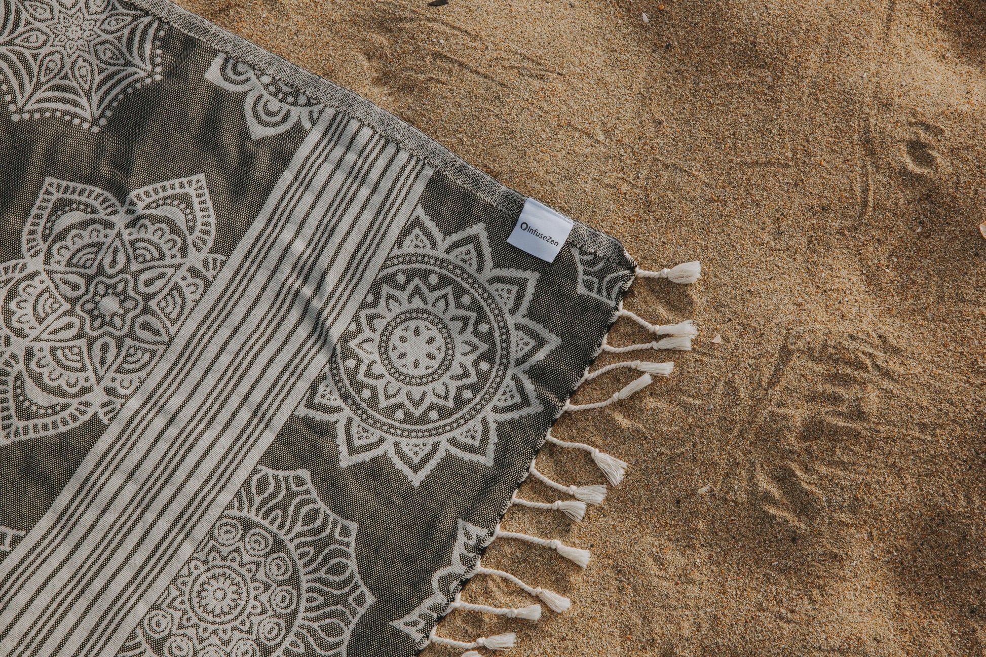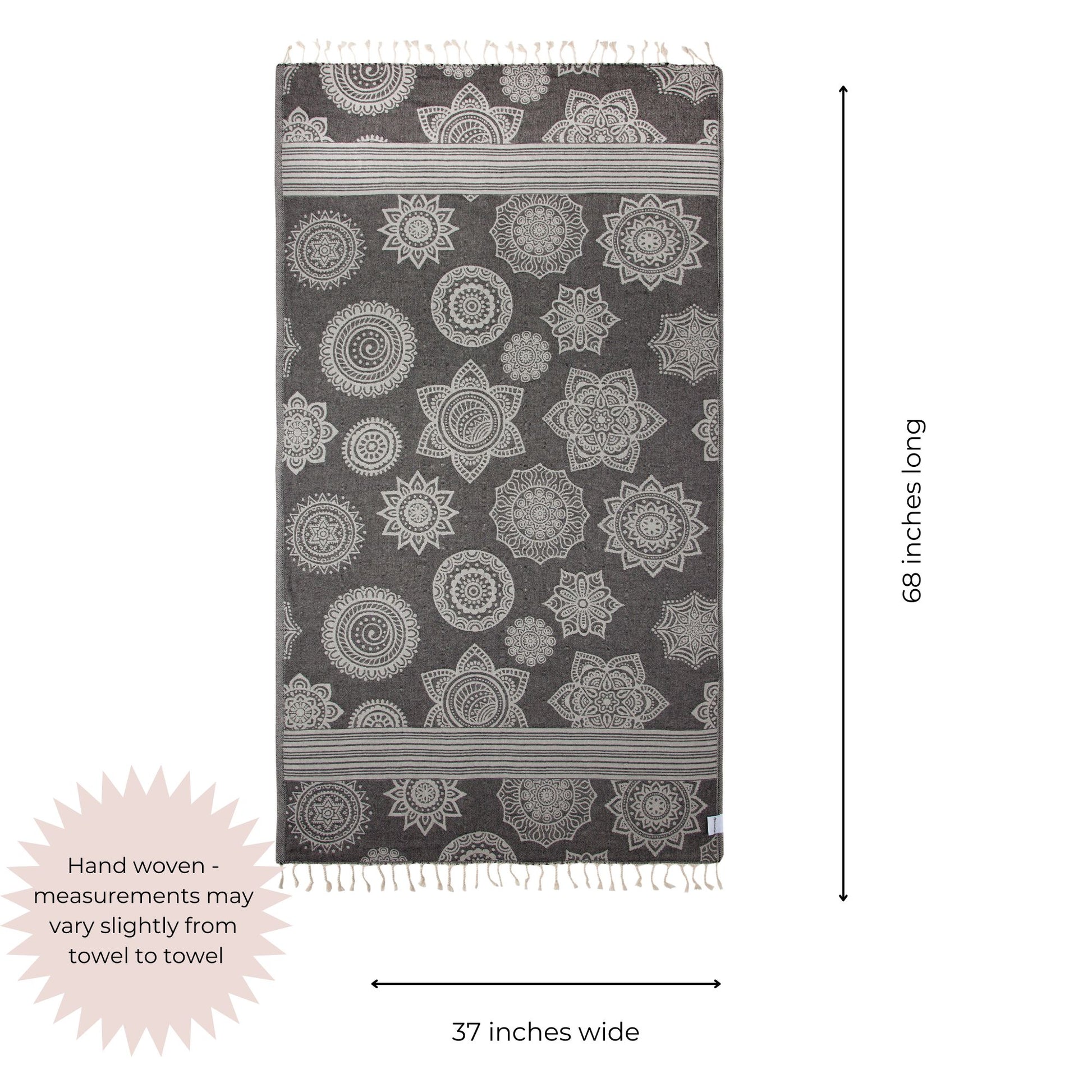Mandala Flower Sand Resistant Turkish Towel in Black