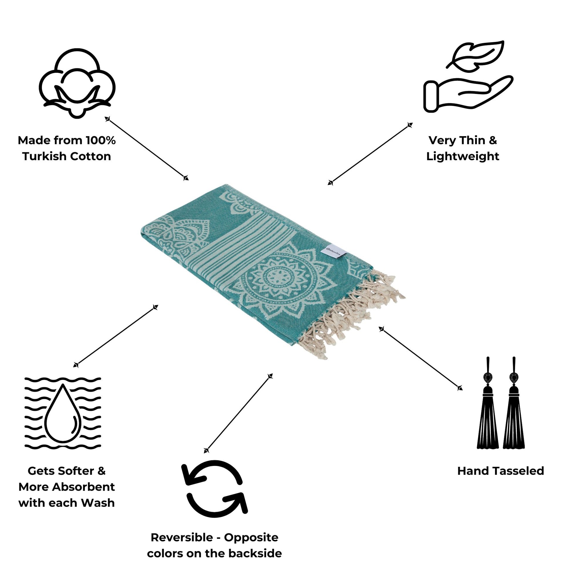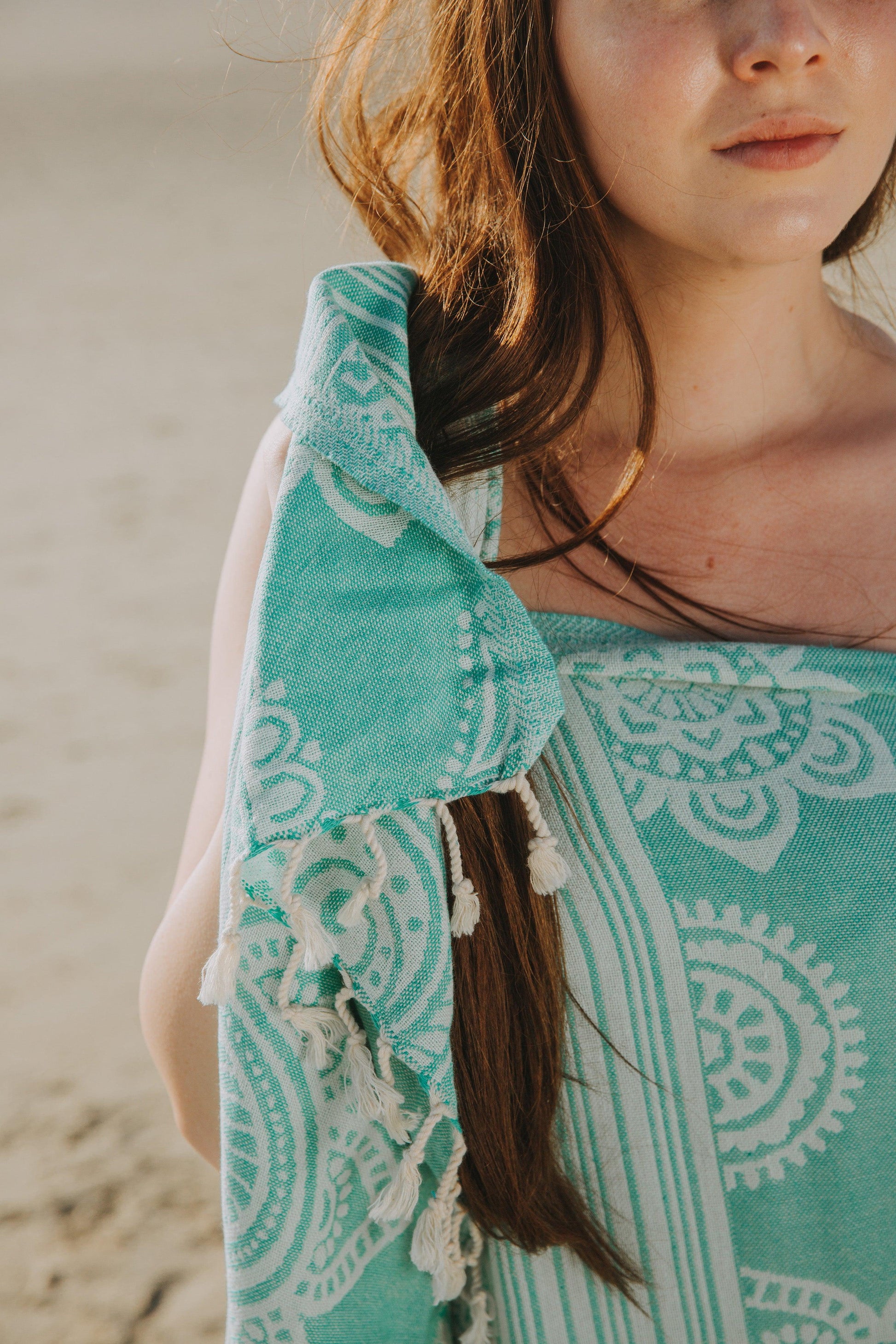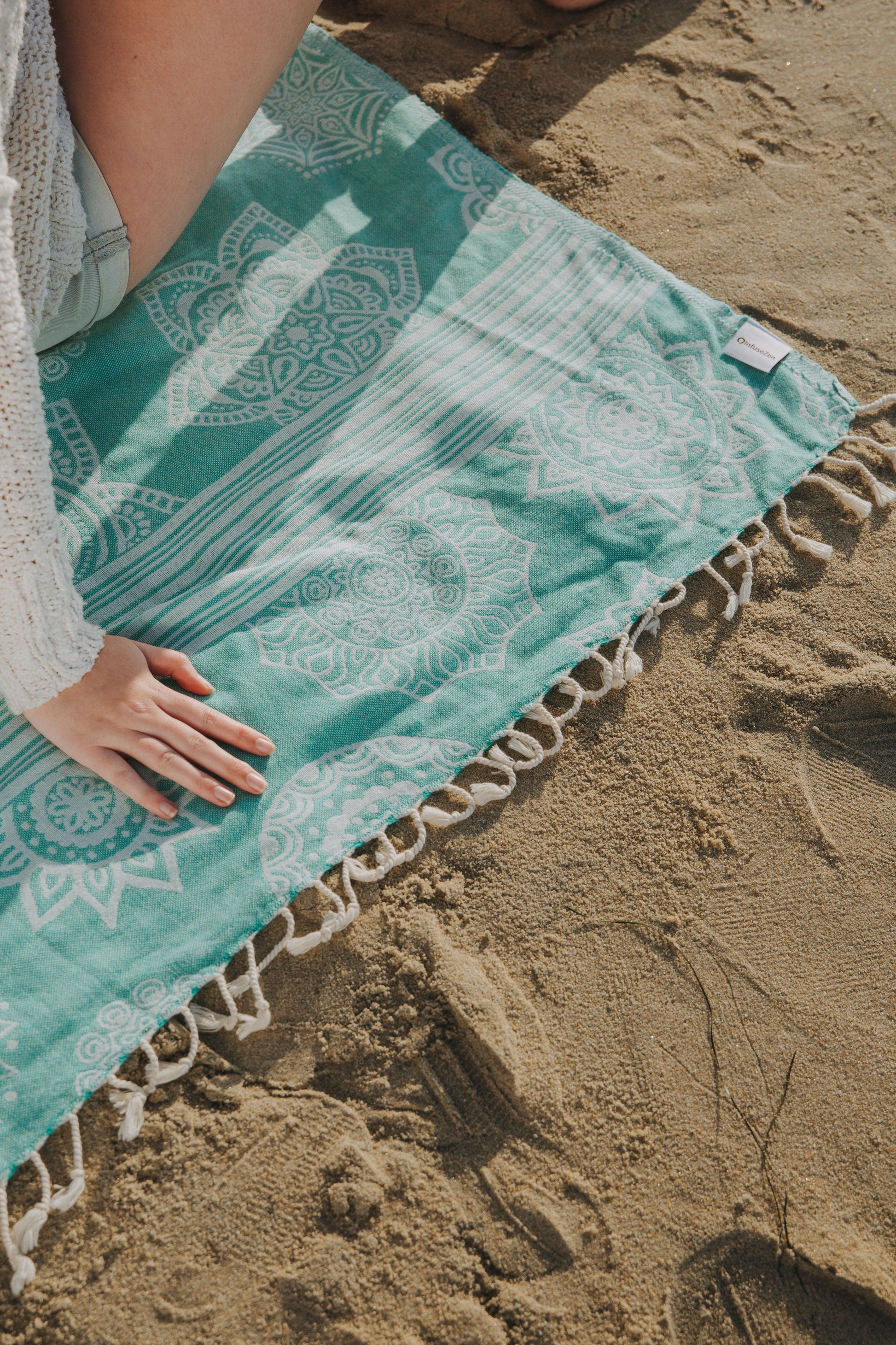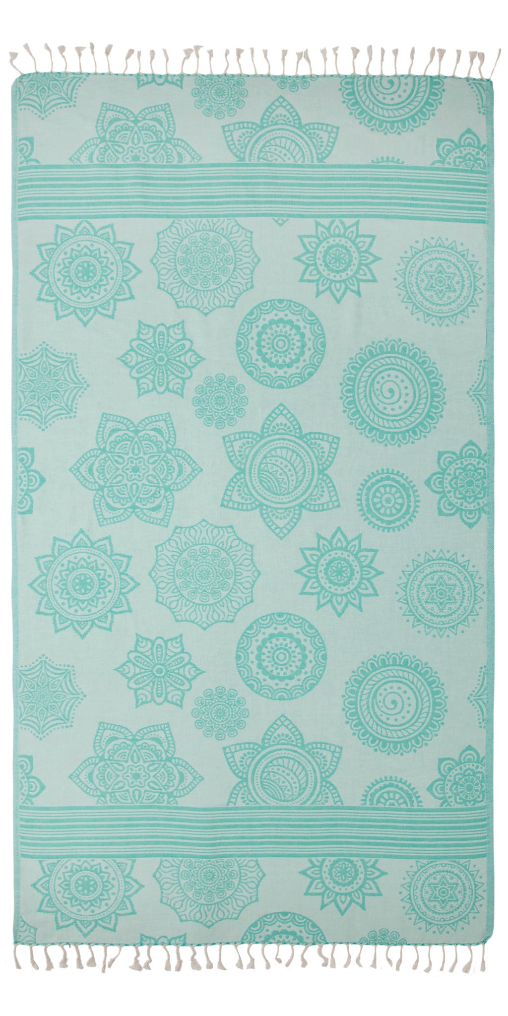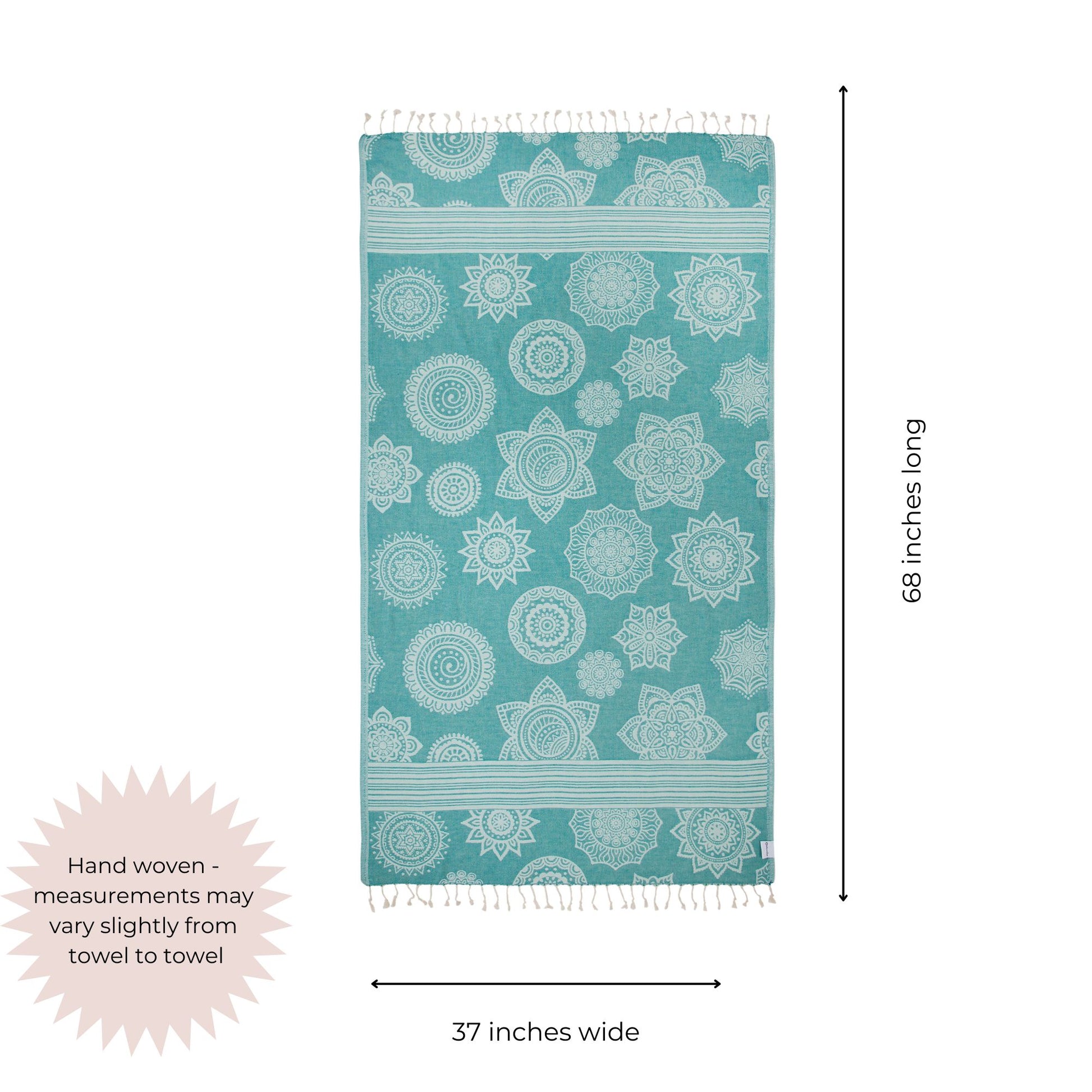 Mandala Flower Sand Resistant Turkish Towel in Seagreen