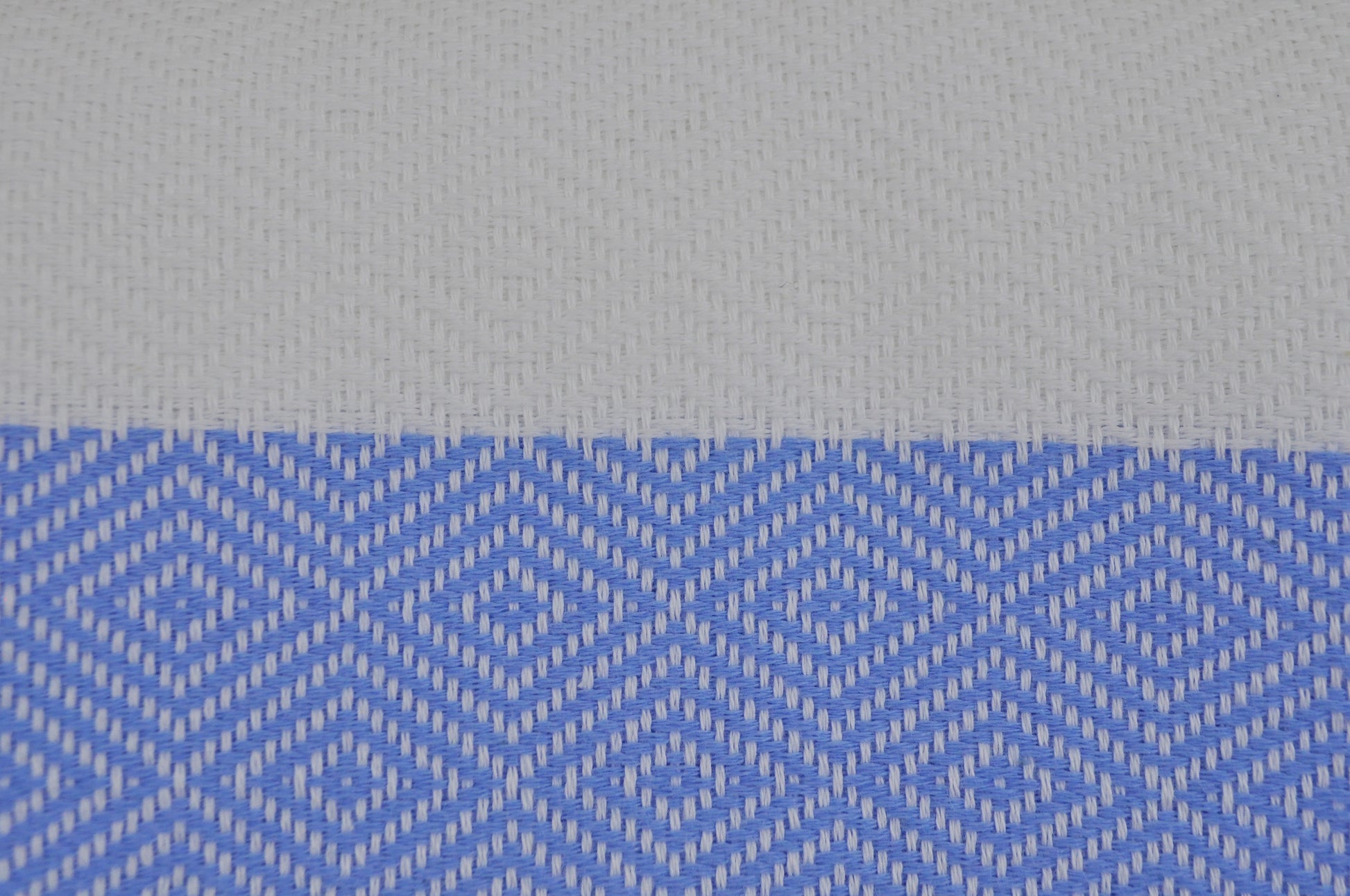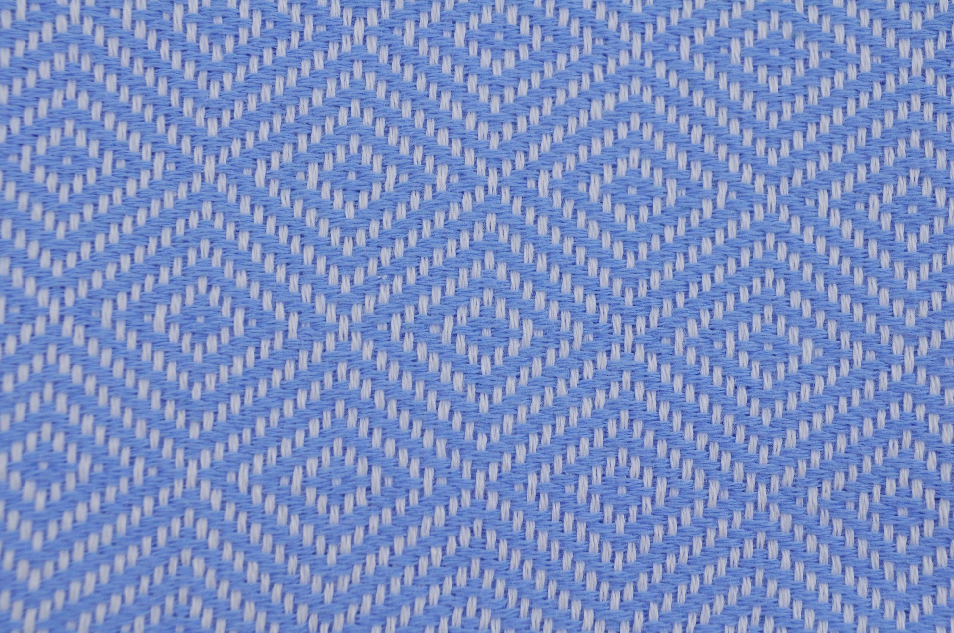 - A classic diamond weave pattern in light blue and white. Looks great in any bathroom or on a beach chair.