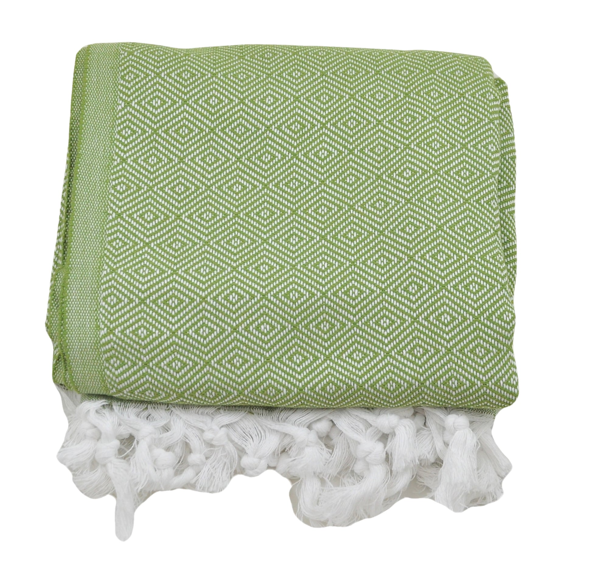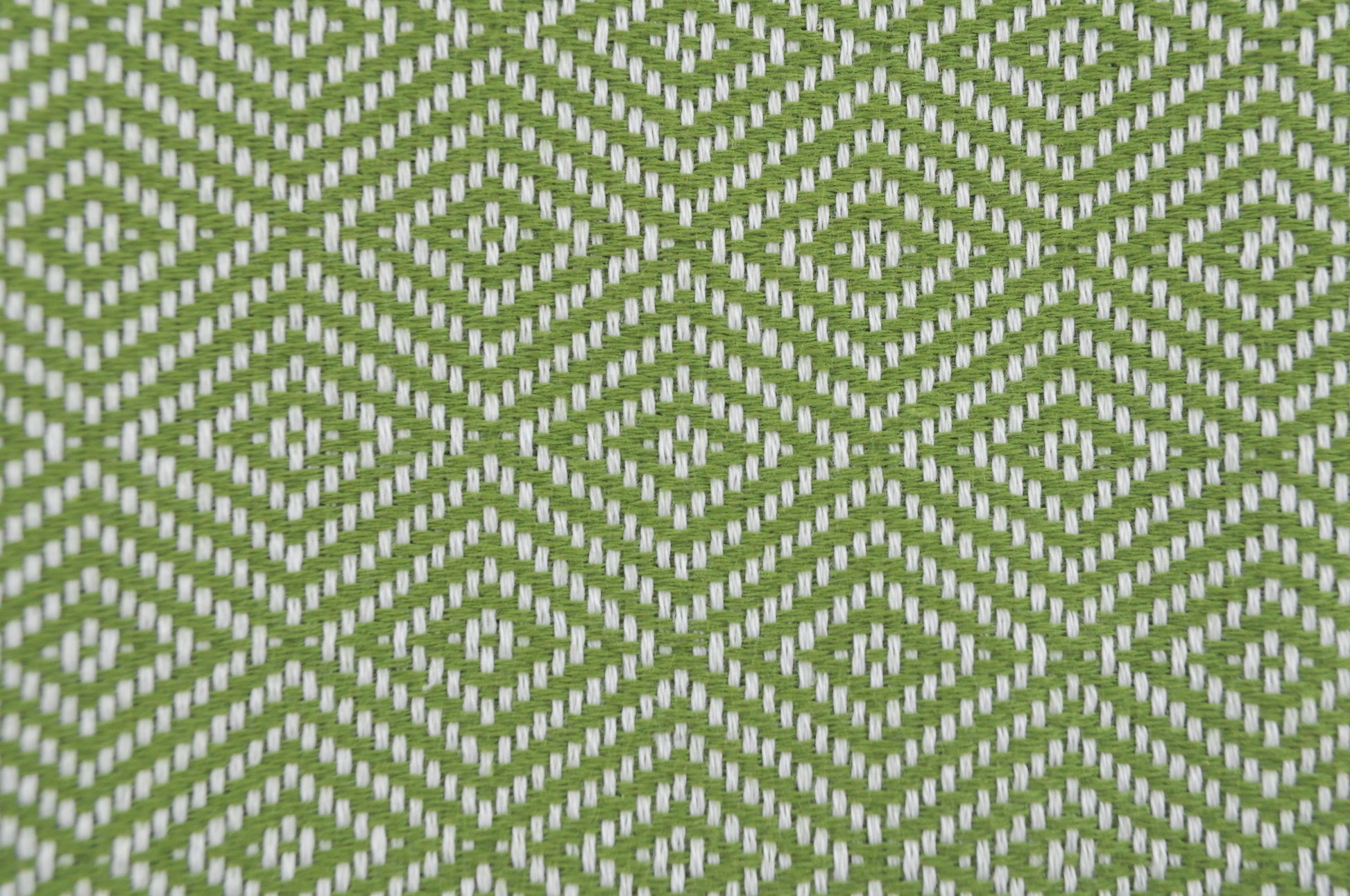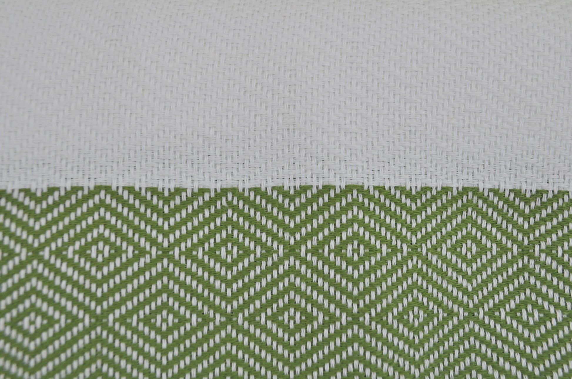 - A classic diamond weave pattern in olive green and white. Looks great in any bathroom or on a beach chair.