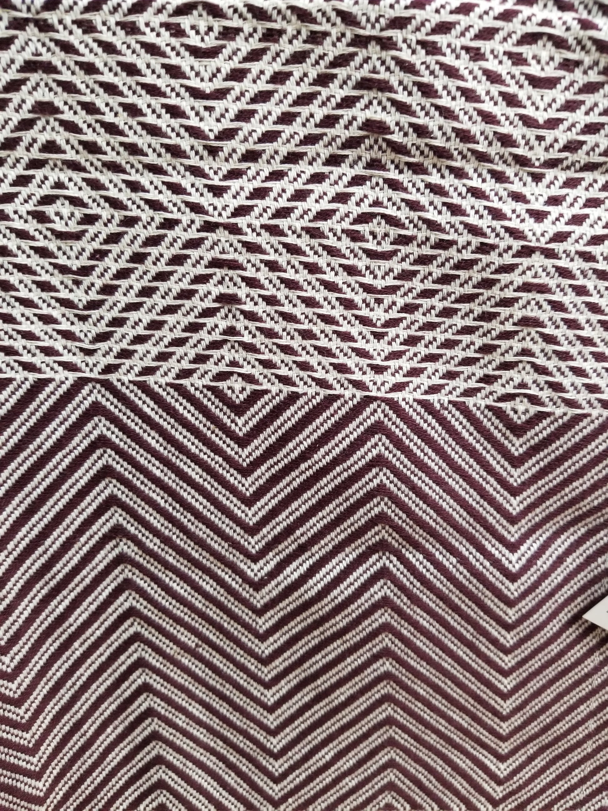 - This woven blanket comes to you in a beautiful Burgundy and cream combination