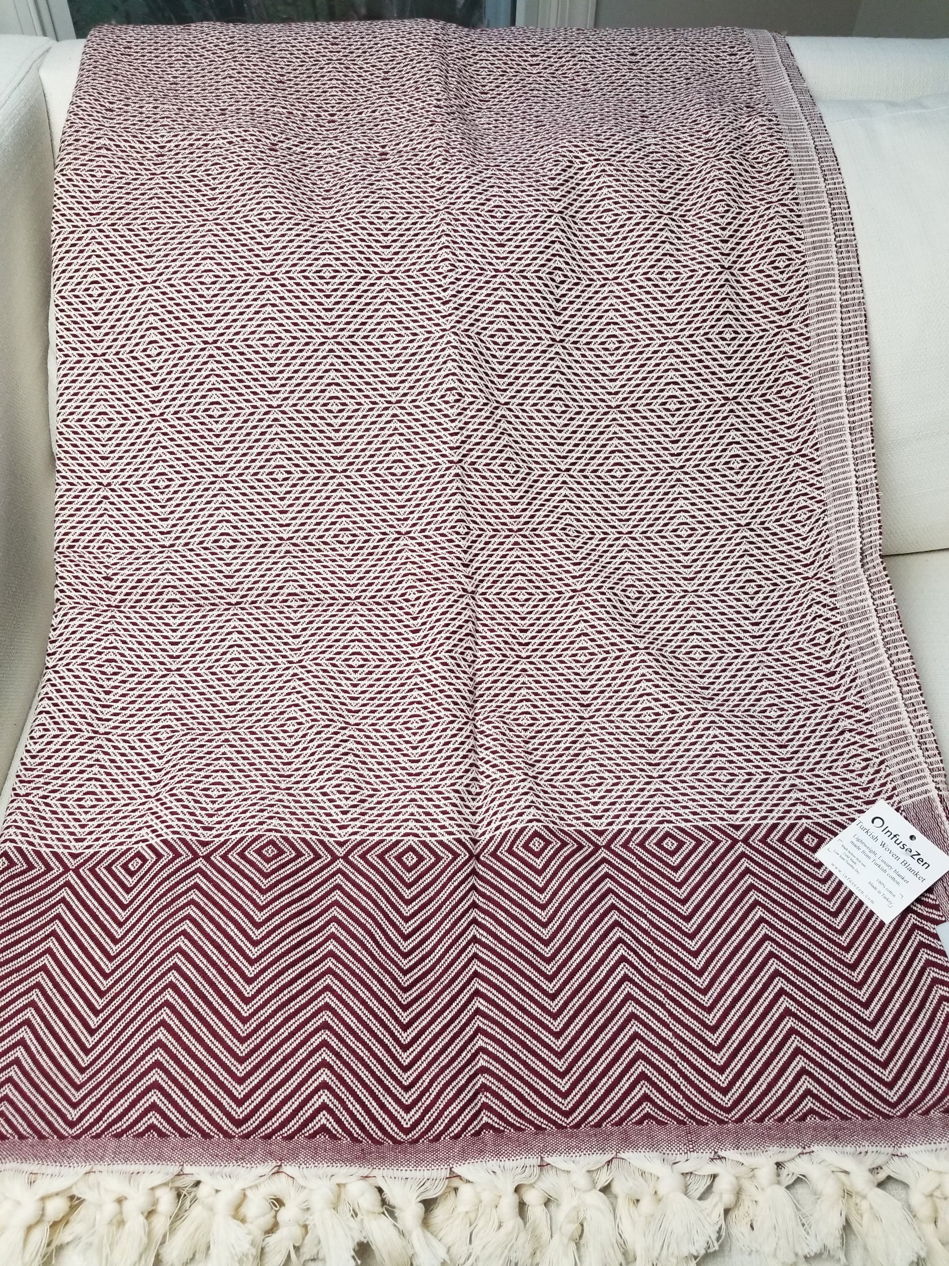 OUTLET SALE - Diamond Weave Turkish Cotton Throw Blanket in Cranberry