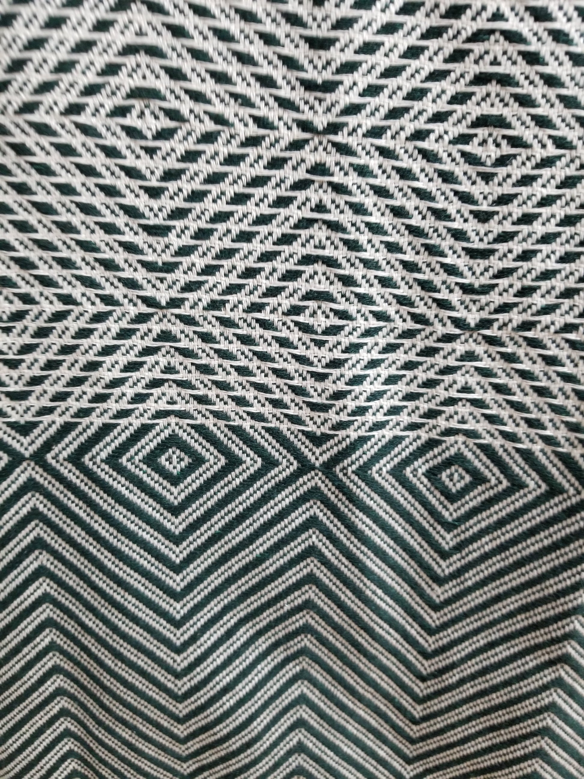 - This woven blanket comes to you in a beautiful dark green and cream combination