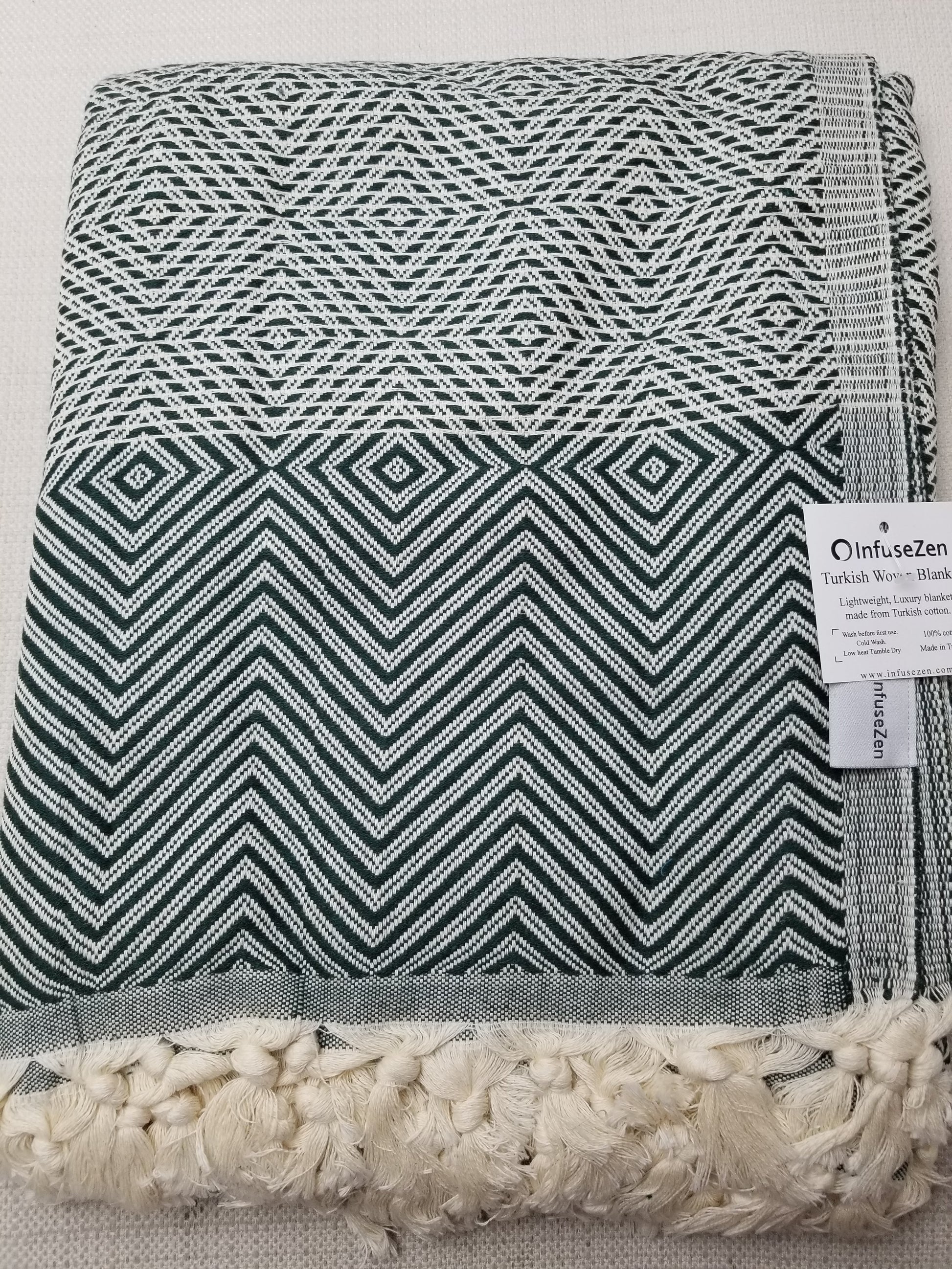 OUTLET SALE - Diamond Weave Turkish Cotton Throw Blanket in Dark Green