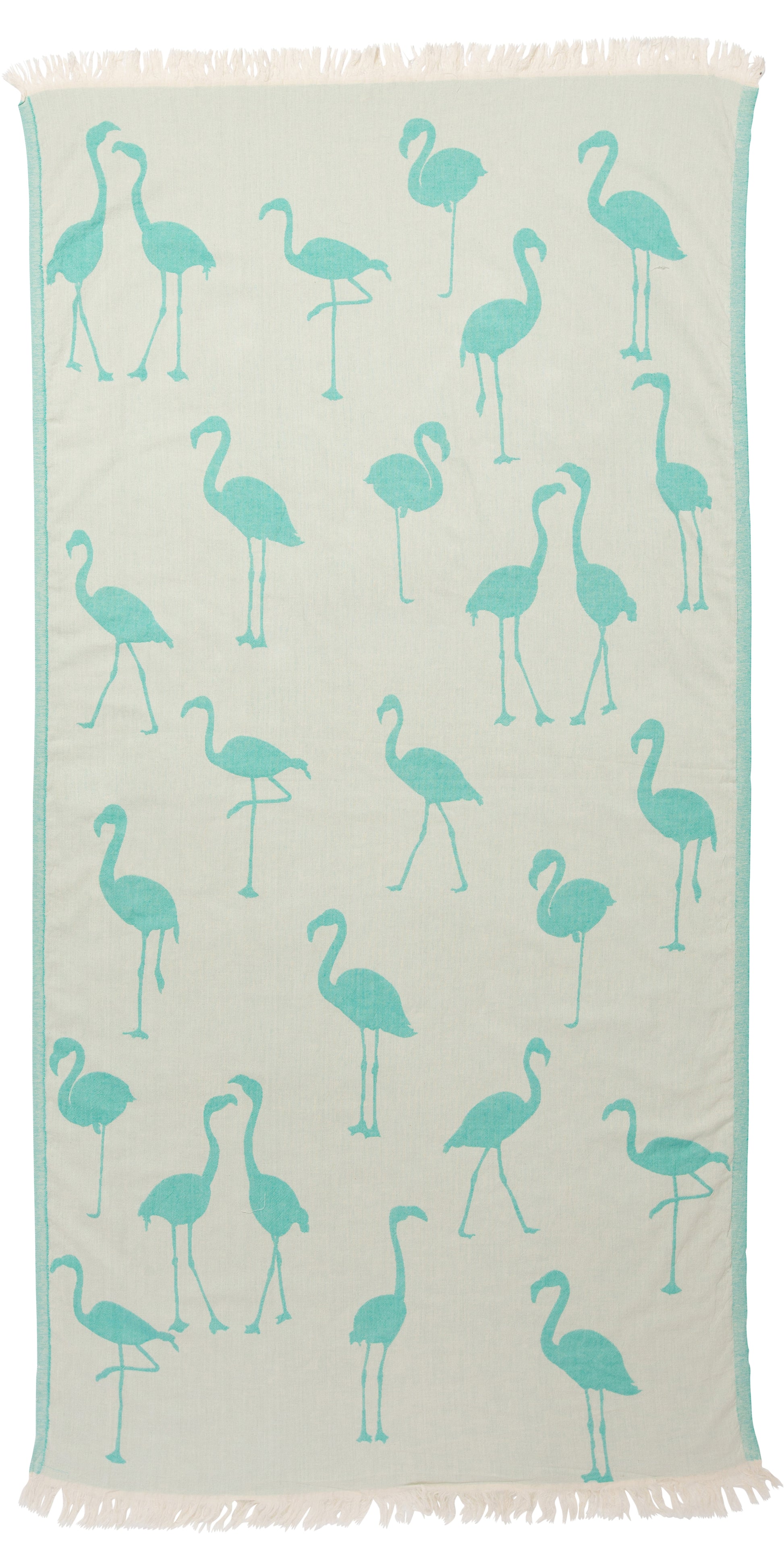 - Mint flamingo Turkish towel with inverse colors on the back side