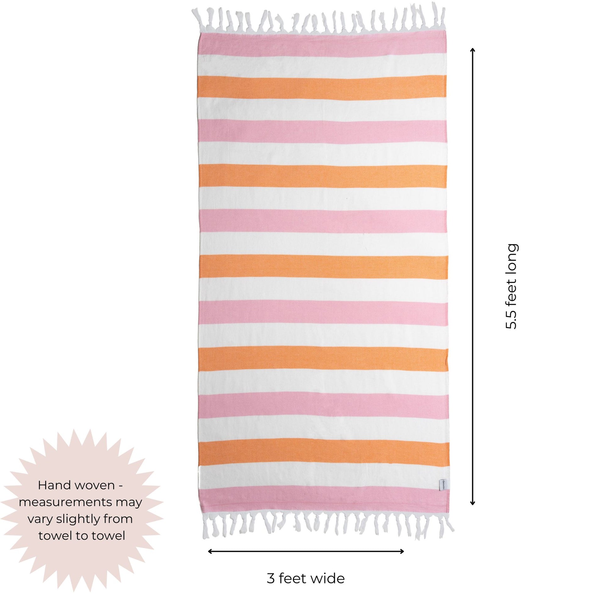 OUTLET SALE - Kapris Terry Lined Turkish Towel in Orange and Pink