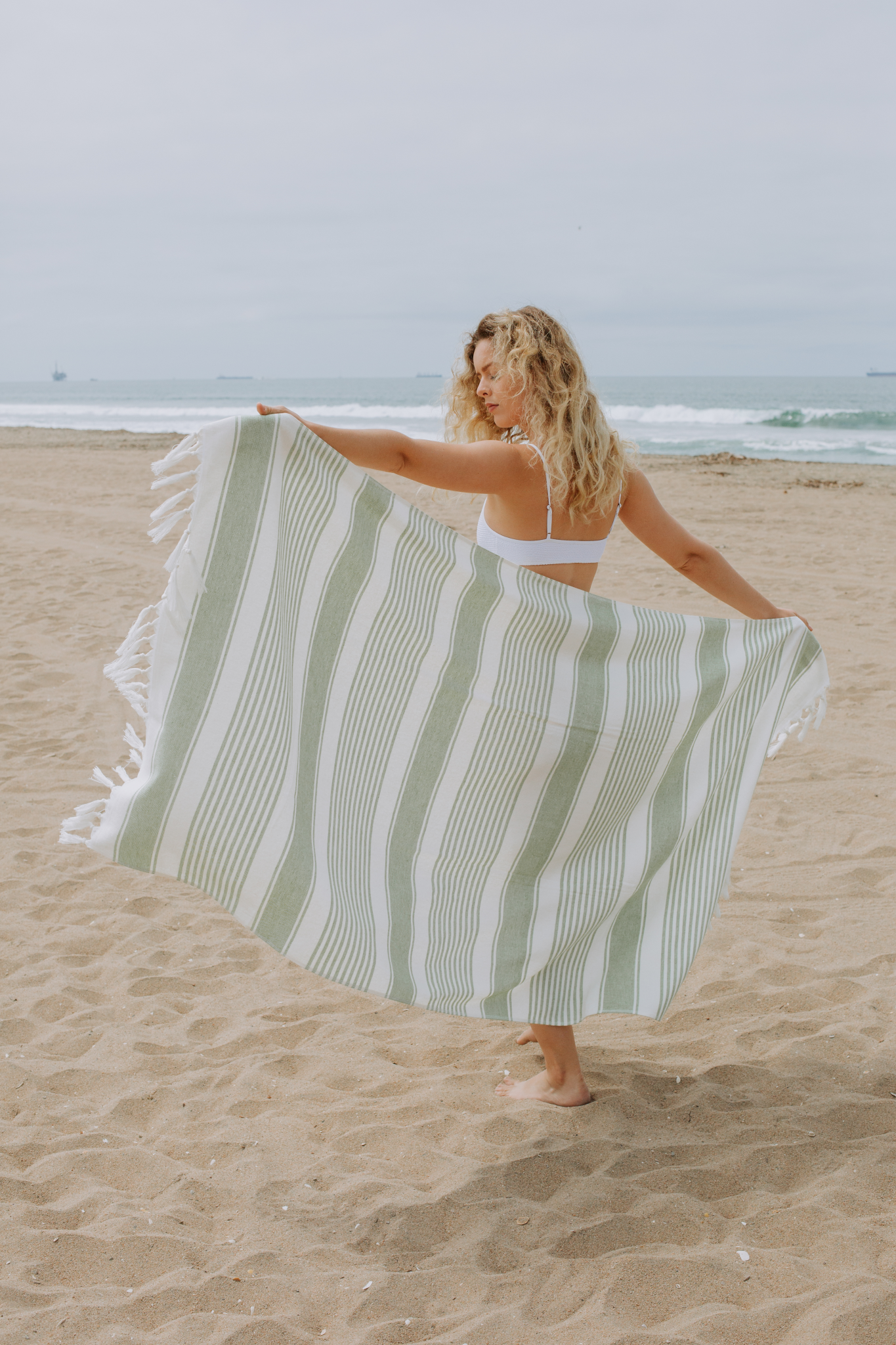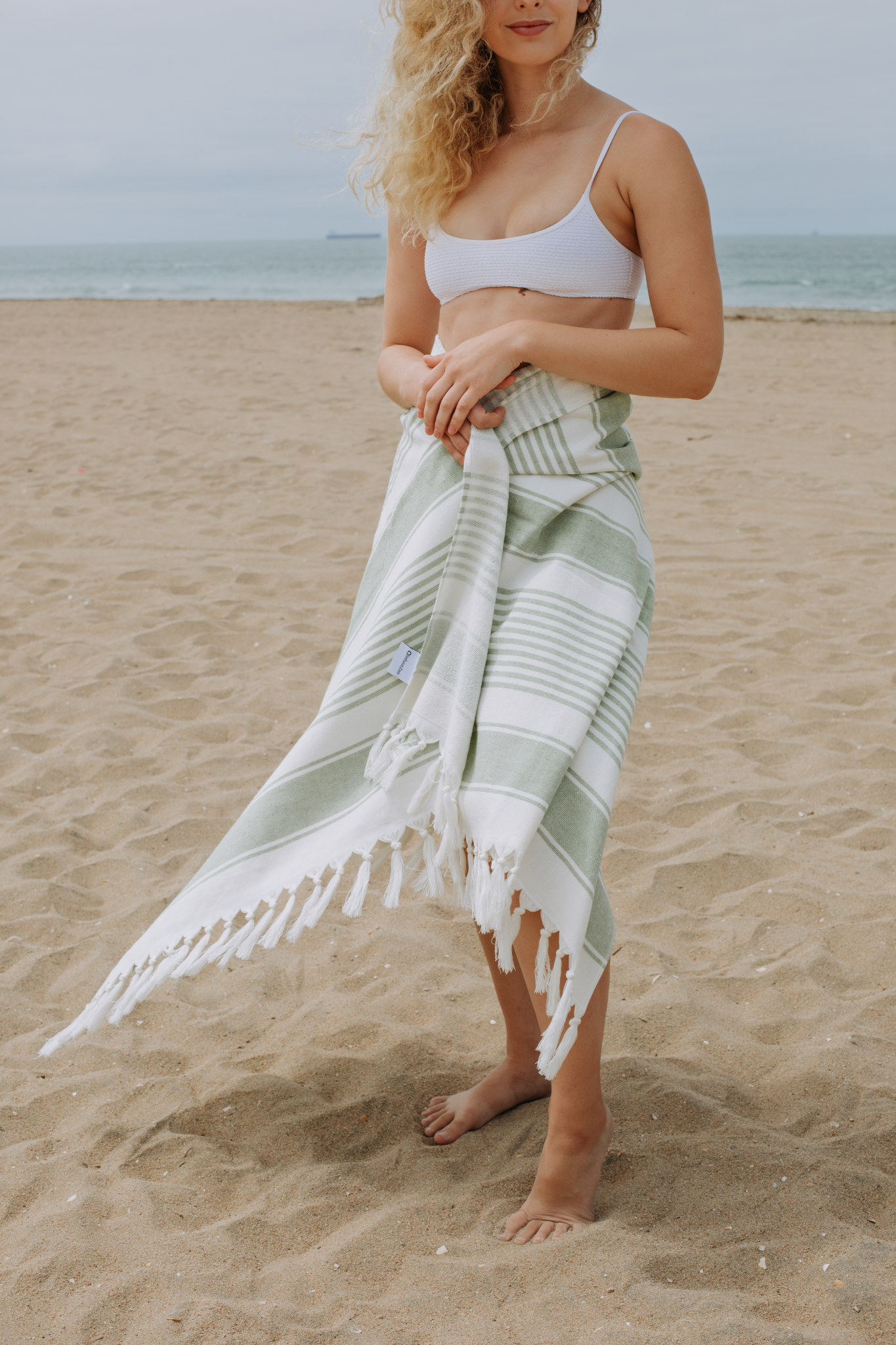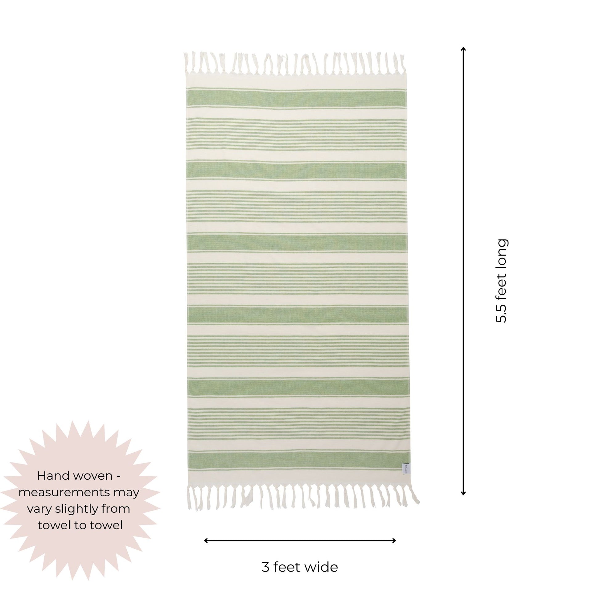 Sauna Stripe Organic Terry Cloth Lined Turkish Towel in Olive Green